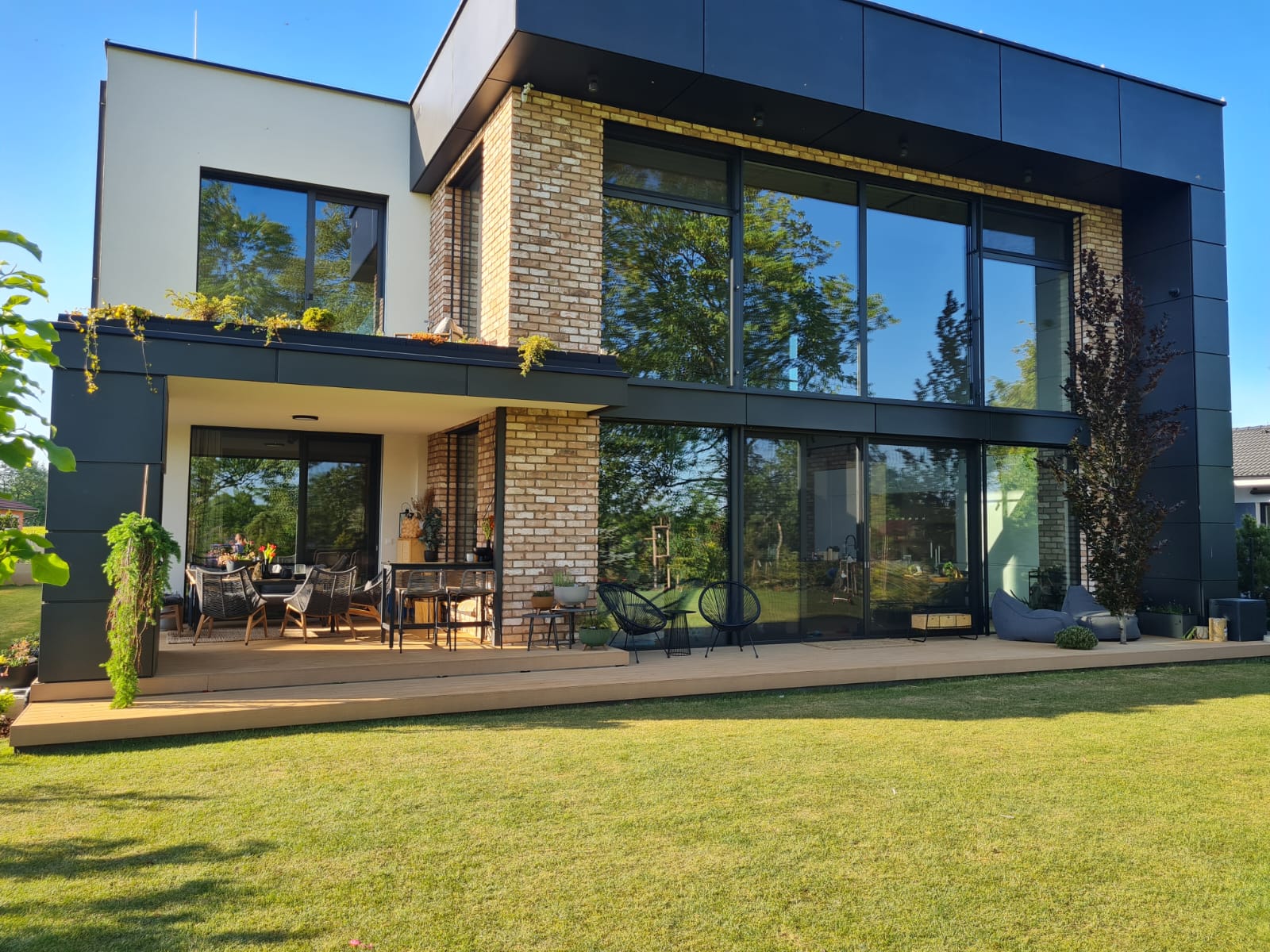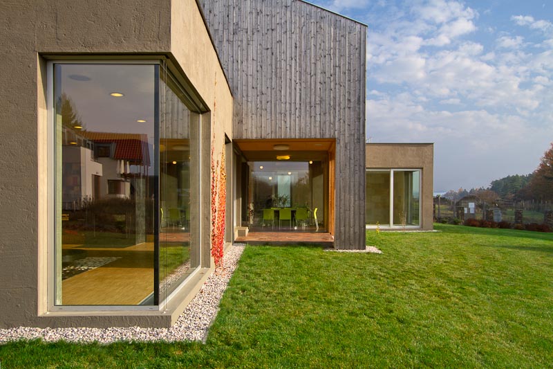 Všechna okna, dveře i posuvné systémy jsou realizována z prvotřídních hliníkových systémů Schüco, které zaručují dlouhou životnost, bezpečnost a moderní vzhled