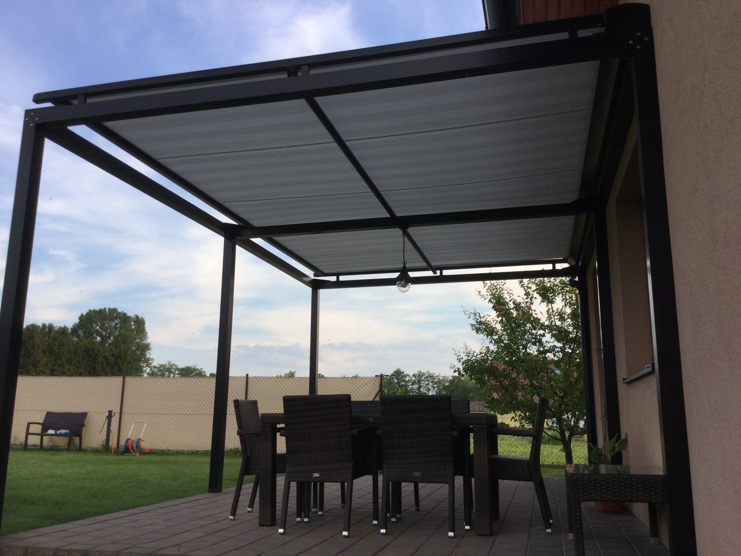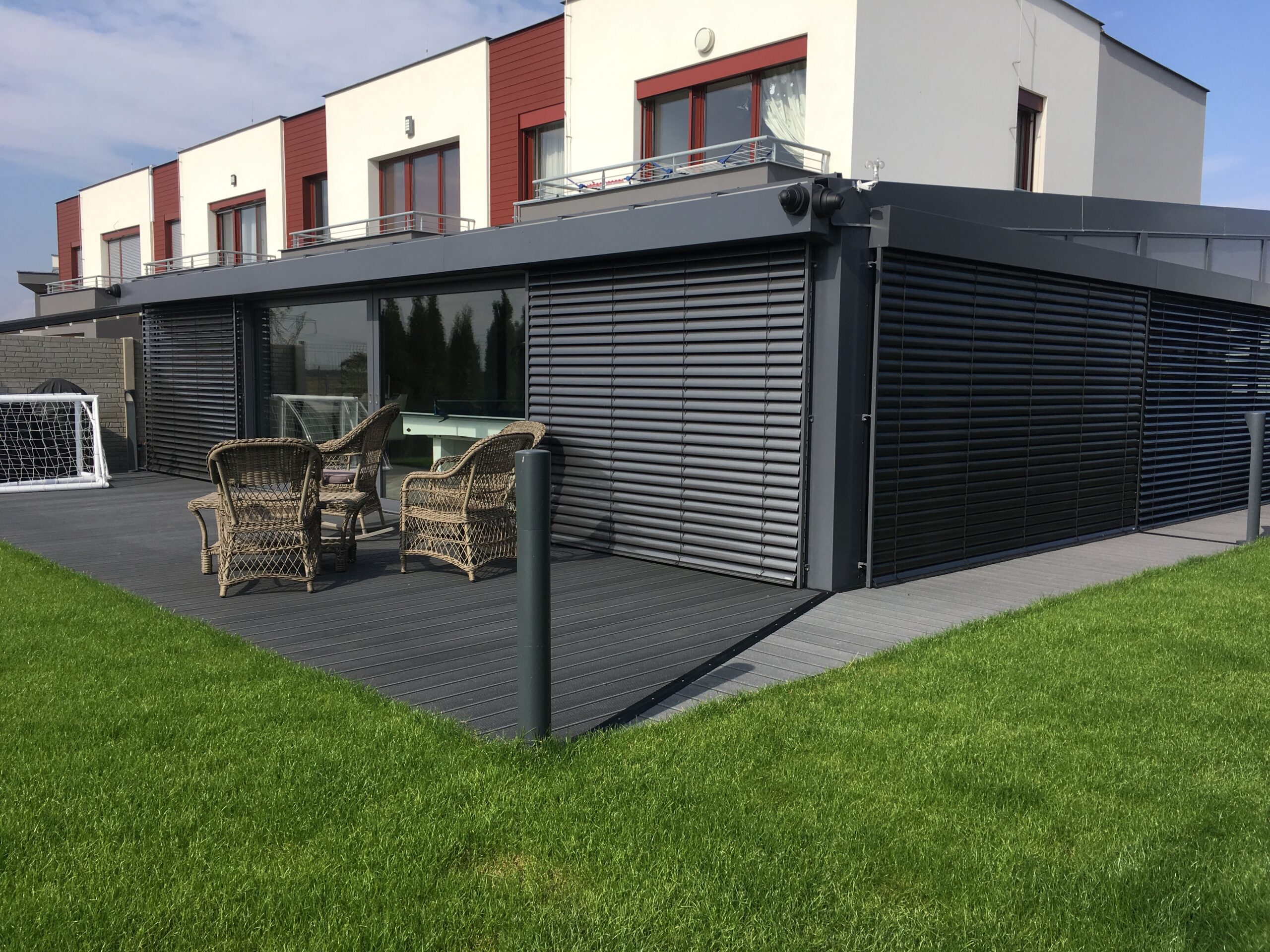 - Pergoly pro terasy – ochrana před sluncem i deštěm, vhodné pro sezónní posezení
