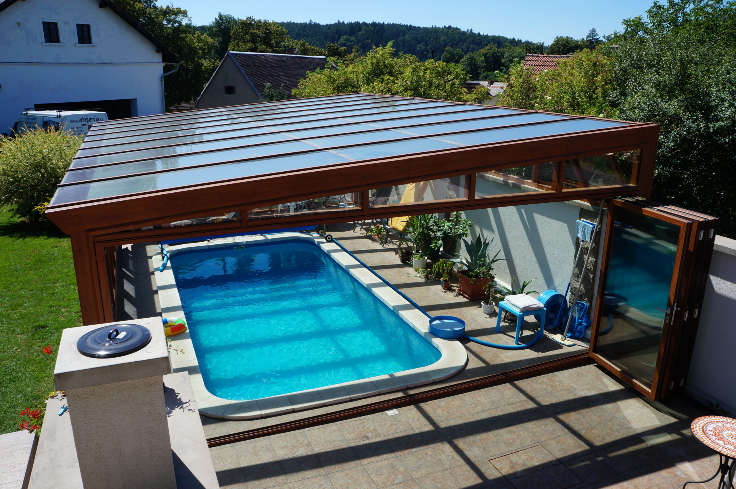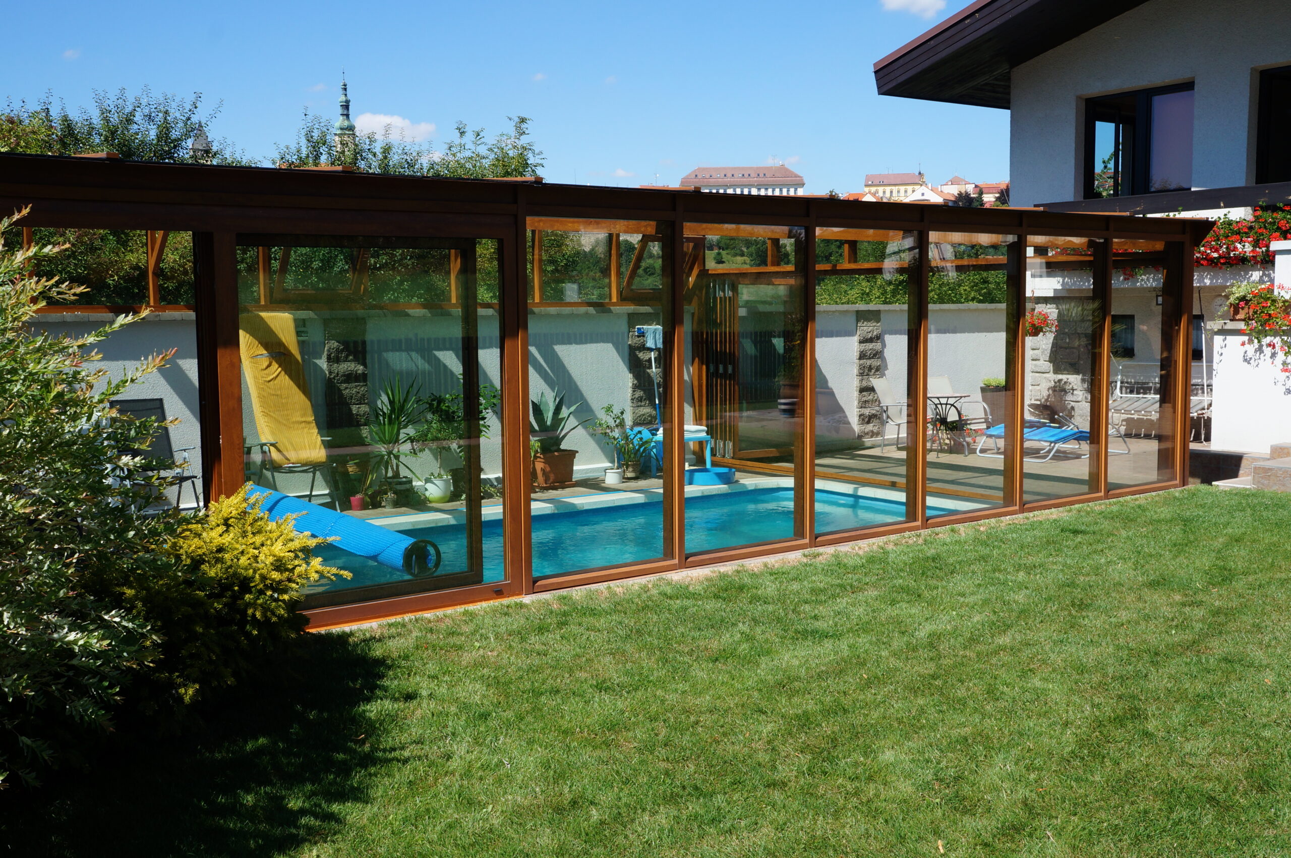 Použité hliníkové profily a typ zasklení vždy volíme s ohledem na způsob využití – od sezónního (nevytápěného) provozu až po celoročně obytné prostory.